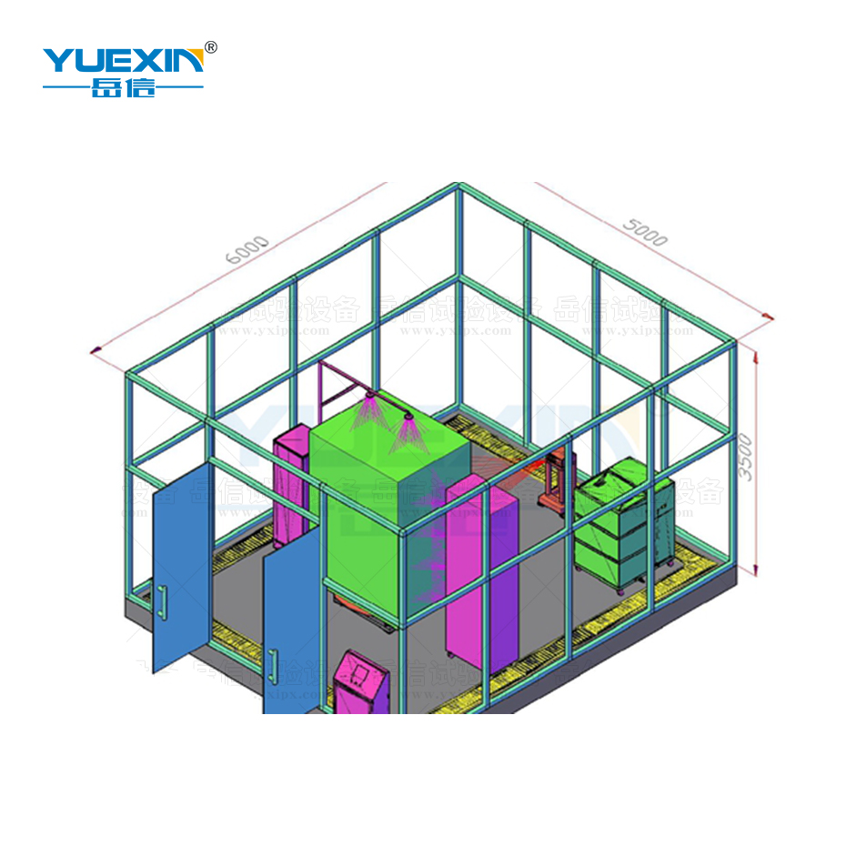 岳信供應的IP淋雨試驗房方案,有箱式淋雨試驗,開放式噴淋試驗房,整體淋雨試驗房,可根據客戶產品使用場景定制防水試驗房、防水試驗臺。與36個行業(yè),超過2852家企業(yè)家共同見證,研發(fā)出10000+套防水試驗解決方案。